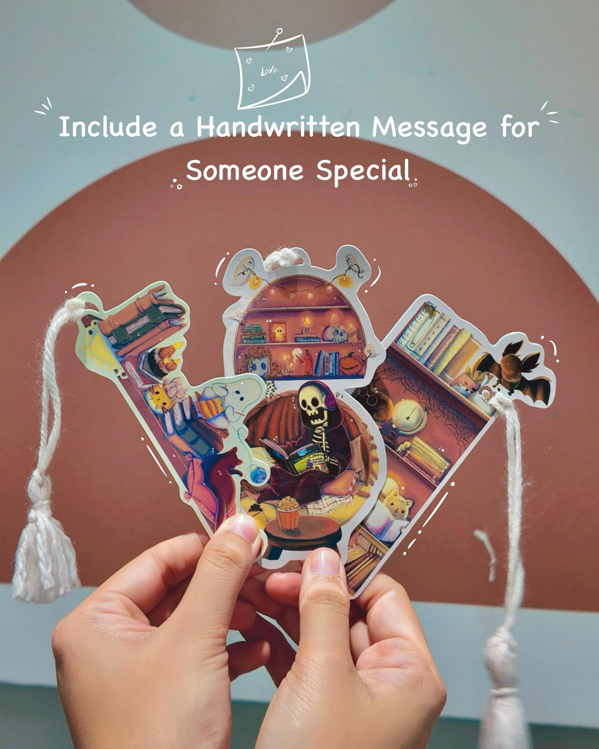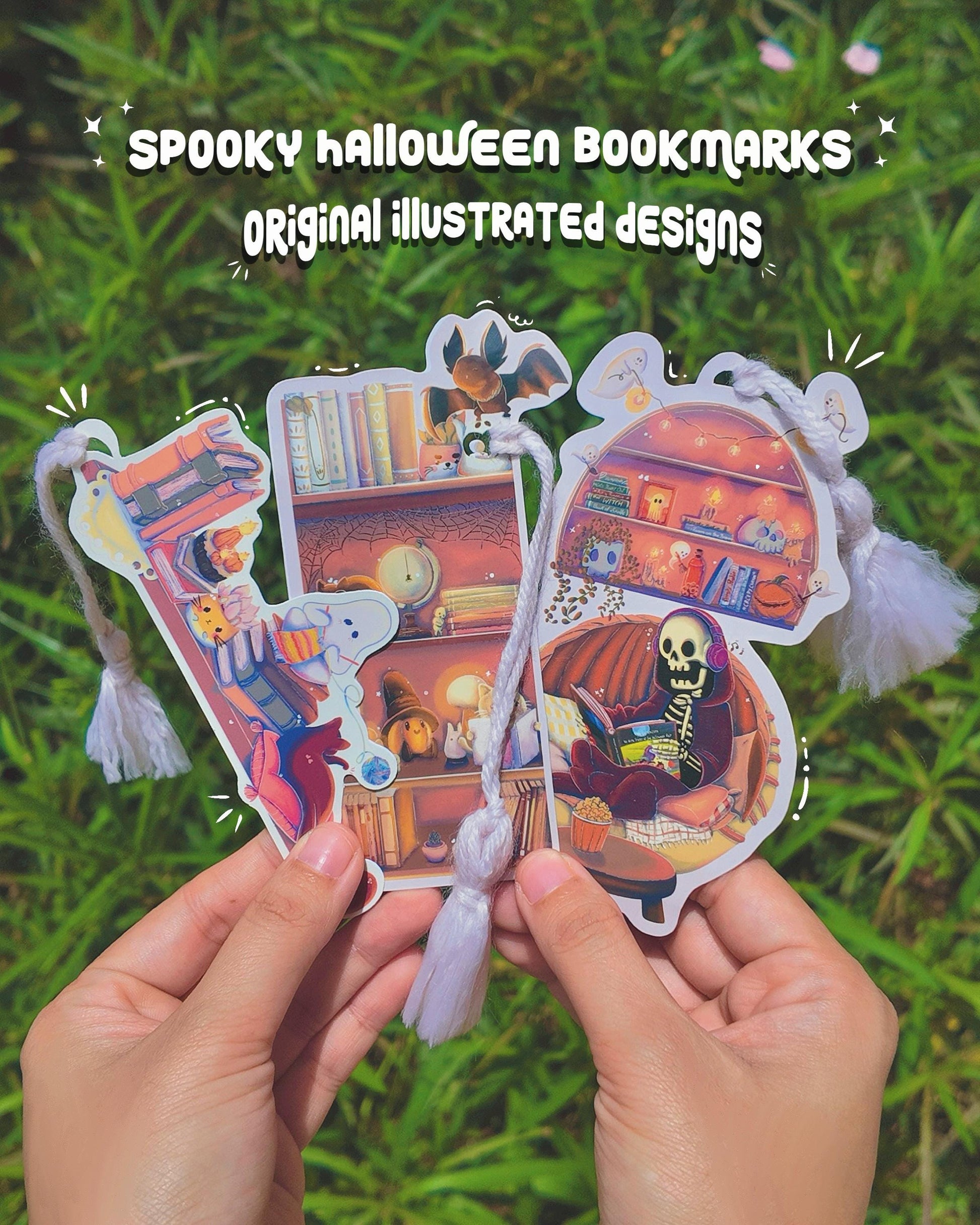 Add a spooky touch to your reading with this illustrated Halloween bookmark set. Each bookmark is hand drawn by me and crafted in my small home studio, finished with a handmade tassel and triple layer lamination for extra protection.