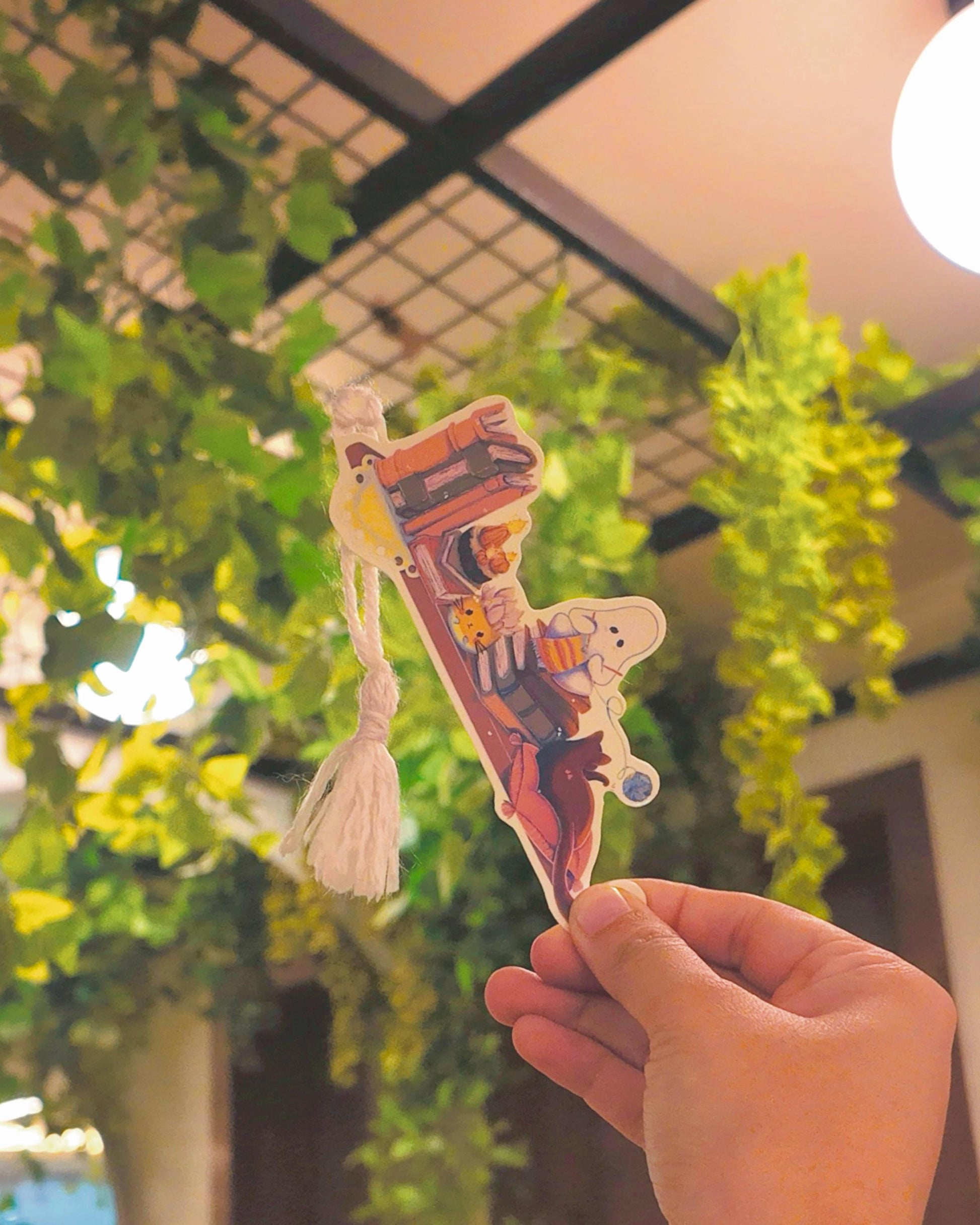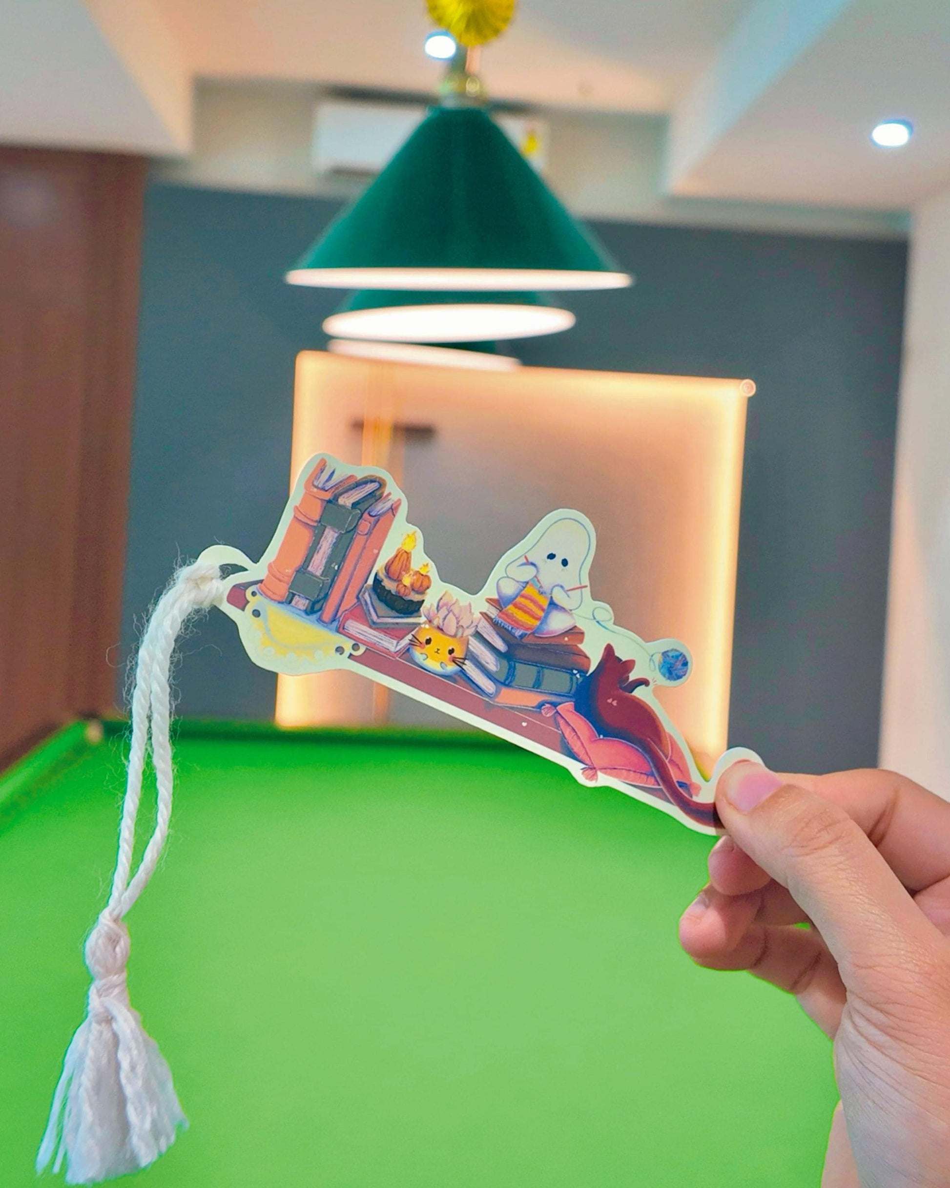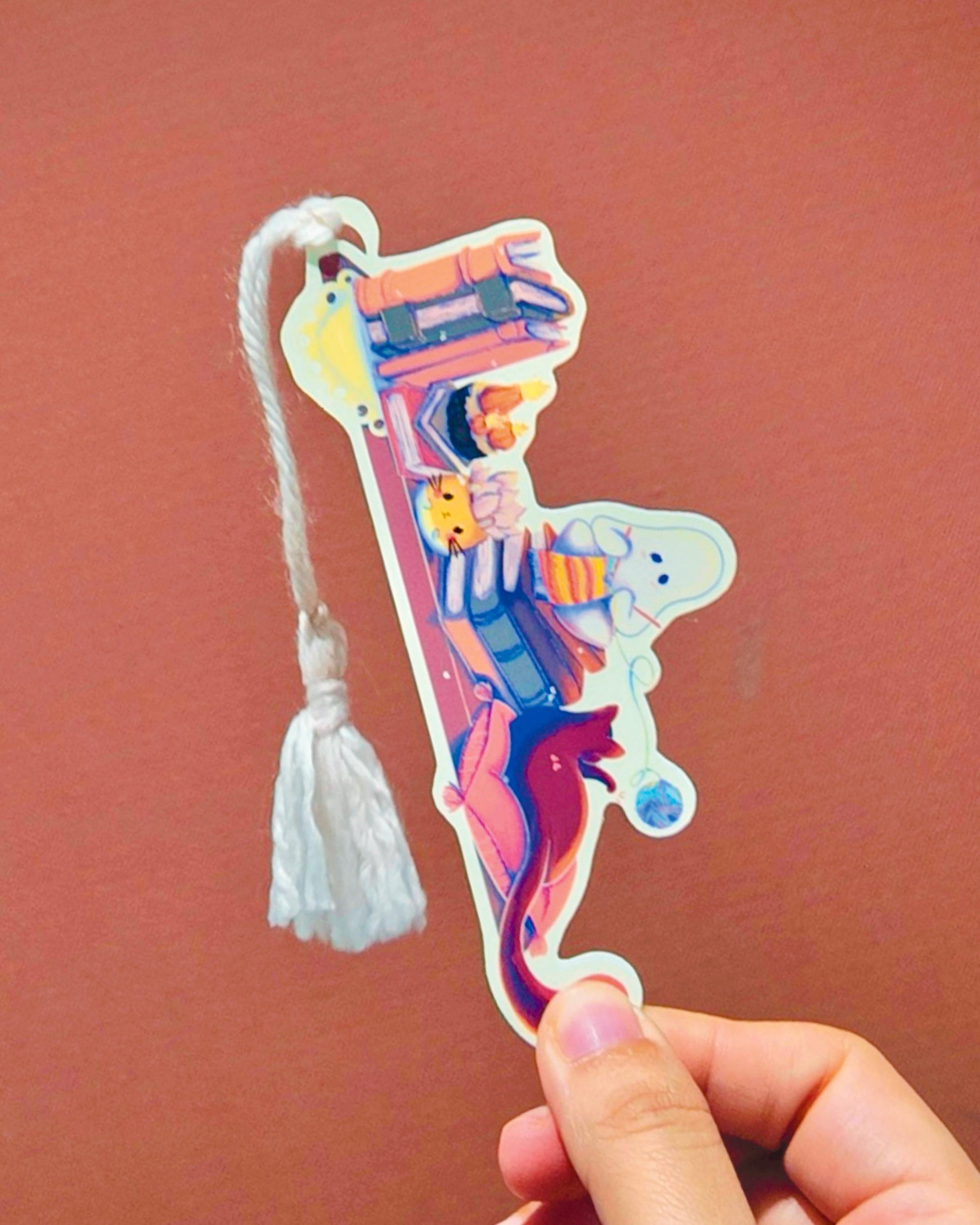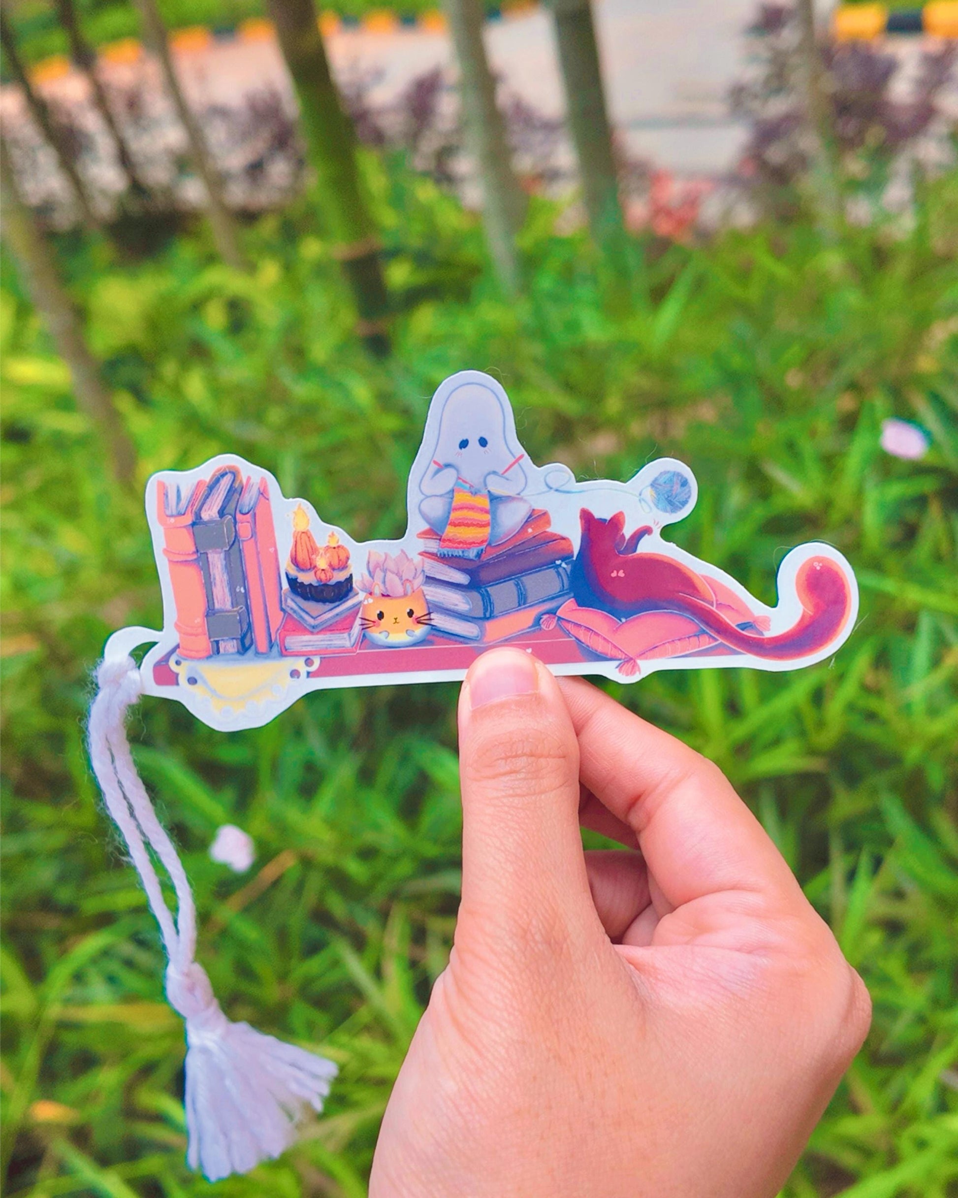 Add a touch of cozy spookiness to your reading time with this whimsical Halloween bookshelf bookmark.